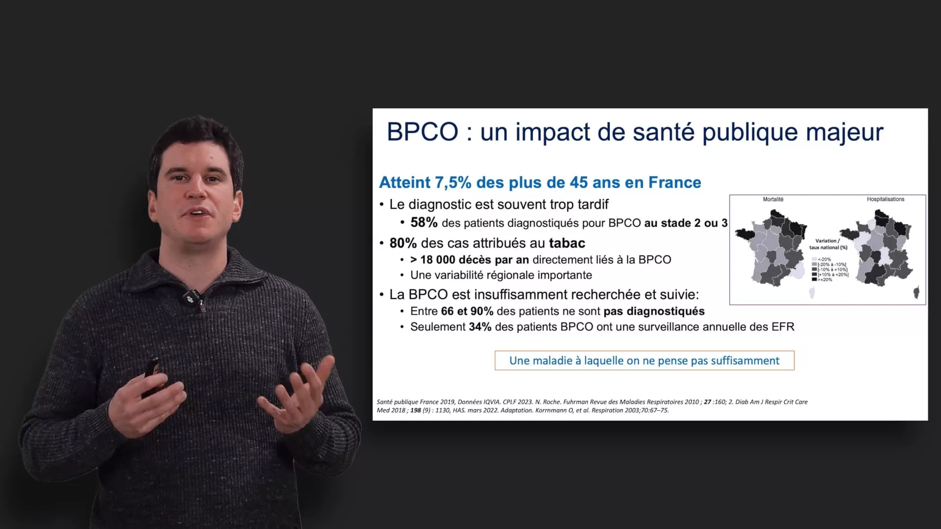 La prise en charge de la BPCO en médecine générale reste difficile en 2026 et constitue toujours un impact de santé publique majeur avec plus de 7% de la population de plus de 45 ans en France. Sa recherche est réalisée trop tardivement et le niveau d’atteinte de la maladie est parfois modéré à sérère lorsque elle est identifiée chez plus de 50% des patients nouvellement diagnostiqués. Comment y remédier ? Par quels facteurs ? Quelles sont les comorbidités associées ? Autant de questions auxquelles le Pr Benjamin Renaud-Picard vous répond et vous accompagne dans ce module notamment aux travers de nouvelles études et des recommandations actuelles.